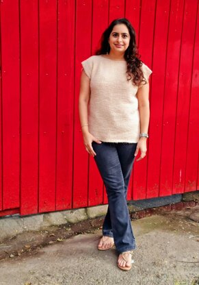 This bottom-up top is worked in the round up to the underarm. The shoulder to underarm part is worked flat for the front & similarly for the back. You can customise this top to make it longer into a tunic or shorter to make it a crop top.