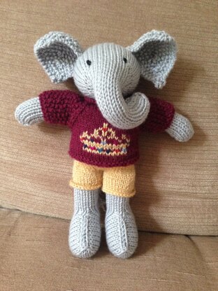 This listing is for an extensive PDF file which contains full instructions for knitting and finishing off a little boy elephant with a textured sweater and shorts.