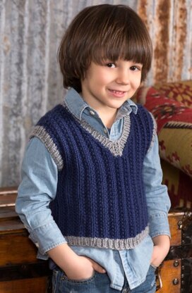 Boy's Seeded Rib Vest in Red Heart Soft Solids - LW4270