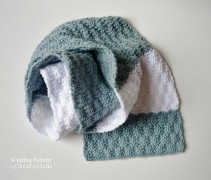 This pattern looks challenging, but it is actually a pretty combination of knit & purl stitches adding stretch and texture. The scarf has a lovely feel to it, made of yarn ideal for children in a wide range of colours. This pattern is perfect for beginners to practice existing skills.