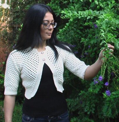 This cute bolero is quick to knit, using a simple and attractive easy all-over lace pattern. Made from super-soft, top quality New Zealand merino wool, this cream bolero is a must in every girls wardrobe. For more knitting patterns from this designer please go to www.marilynpeters.com