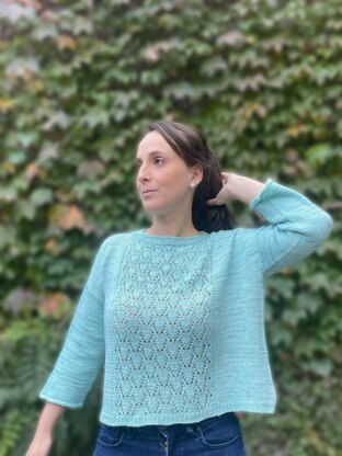 The Bracuhy top is a fun pattern with an interesting and delicate lace panel, worked in the round from the bottom up. The boxy and cropped fit makes this a great versatile and comfortable to wear piece that goes with any outfit.