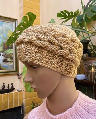This pattern is for a simple version of a cable hat. No cable needles is necessary .