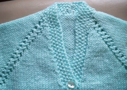 This pattern comes from a booklet published by P&B in the 1950s. I still have the original pattern, which belonged to my great-aunt Joyce. Over the years, I have knitted many of these sweet cardigans, for baby boys and girls. The pattern is worked up in five pieces, and the raglan seams are then braided together, before finishing the neckline. There is a decorative band along the bottom edge and a seed stitch border around the cardigan. I’ve edited the original pattern and added the extra size.
