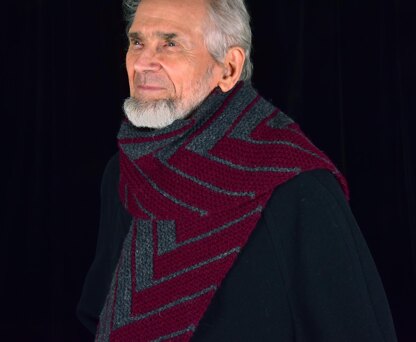 This scarf brings 3 simple concepts together into a more interesting, but easy to knit, scarf. Stripes provide color contrast; shaping bends the stripes into chevron patterns; and the final addition of short rows changes the thickness of each stripe. As the stripes become thick and thin, the proportion of colors changes,creating a braided look.