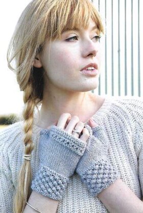 This is a pattern for bramble cuff fingerless gloves, originally published in Knitting magazine. They are worked in the round either using a circular needle or double pointed needles. The main part is in stocking stitch with a bramble stitch cuff, and eyelet border at the top. Photos Knitting magazine.