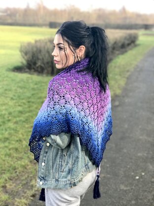 Materials 1000 metres required Finished shawl size 184 cm x 92 cm