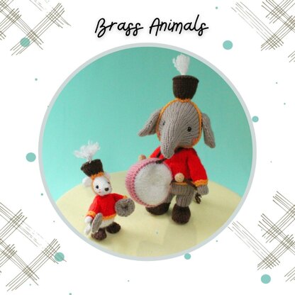 All parts are knitted flat and sewn up at the end. No circular knitting is required. The elephant’s body is stuffed with toy stuffing and a few small coins as weights to counterbalance the drum. Omit the weights if you prefer.