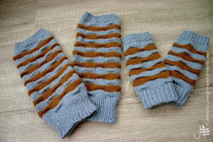 Breakdance! Textured ankle warmers and matching wrist warmers are fun to wear! Each stripe features a technique that I call ‘Grab Stitch’ that creates folds in the fabric which give your knitting a wavy look, as well as help to lock in that heat. It is knitted flat then seamed.