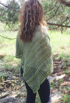 You have the option to make it larger if you have extra yarn. One edge has a double crochet border, and the final edge has a row of picot stitches. Breathe Deeply can be worn as a scarf, but is large enough to be a wrap.