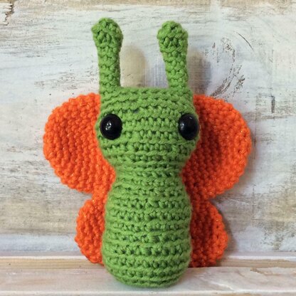 I designed Breeze because most amigurumi butterfly can't stand up on their own two wings! Breeze is an adorable butterfly who is sturdy enough to take her place on a play mat or shelf but is soft enough for cuddles too!