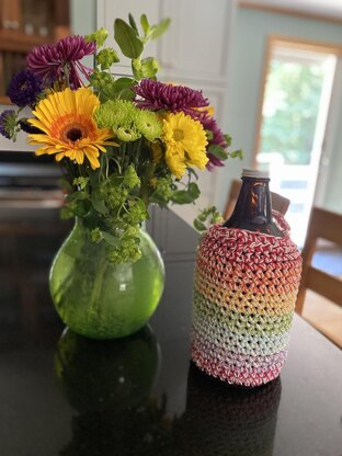 The Brew Buddy is a fun, double-stranded crocheted Growler Cozy. It is worked all in single crochet & half double crochet (US Terms) with some basic increases and decreases to snugly fit your Growler and keep it cozy.