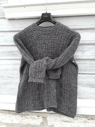Pattern recipe for textured sweater. Your yarn, your gauge! • Seamless • Top-down • Try-on as you go • The garment has positive ease; there is no shaping and the sleeves are straight (no cap), so you can do more or less pattern repeats in the width or add more or less double moss stitch. Make it with a small positive ease or quite oversized, it is up to you. • When choosing your yarn, make sure that the stitch pattern shows nicely. Adding a thread of mohair may help to achieve that. KAL here. In the top picture the sweater is modelled by Katju.