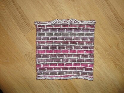 This is a cowl for men, women and children. It is made in Tunisian crochet in the round. The two sides of the cowl have different structures, and both are decorative and interesting.