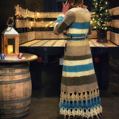 Cozy and chic, textured and lacy, belts and buttons all in a sweater and coat; at least, that’s what I call it anyway. Some say ‘duster’, I say sweater coat! At any rate this will likely become your new favorite cold weather wear!