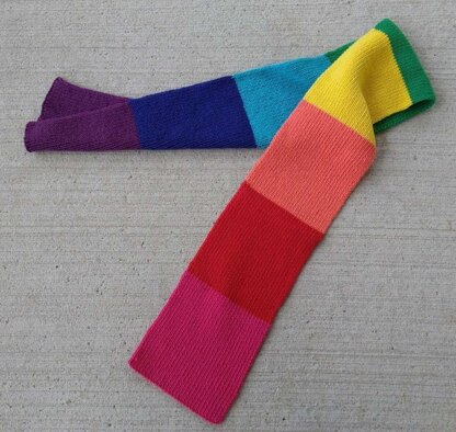 This scarf is worked flat, back and forth in 1x1 Ribbing. The instructions are written for 8 different colored stripes, but your stripes could very easily be modified. Feel free to make it your own! Choose different colors or choose a different number of colors. Make your stripes longer or shorter. Just make it fun!