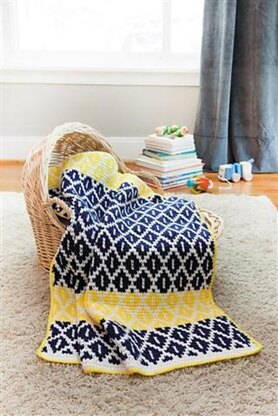 Leisure Arts Tunisian Crochet Baby Blankets Bright Strands ePattern- Create heirloom blankets for baby with Tunisian crochet. If you love the look of knits, but are an avid crocheter, this is the ePattern for you. Design features a brilliant colorwork diamond pattern worked up in 3 colors using the Tunisian simple stitch. Project calls for size 4 medium weight yarn, a 22", or longer, US size K-10 1/2 Tunisian crochet hook, and a standard, US size I-9 crochet hook. Includes row-by-row instructions and a full guide to Tunisian crochet basics. Finished blanket measures approximately 30"x 42 1/2". Intermediate to advanced skill level. 11 pages, PDF download.