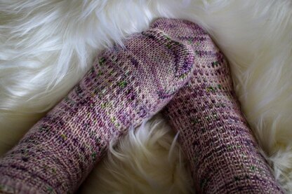 Worked in the round, this pattern provides both cuff-down and toe-up instructions for a seamless sock, accompanied by charts for pattern motif. While the pattern comes with instructions for a peasant heel (afterthought heel using scrap yarn), it’s adaptable to your personal preferences and unique feet. Links for alternative heels have been included!
