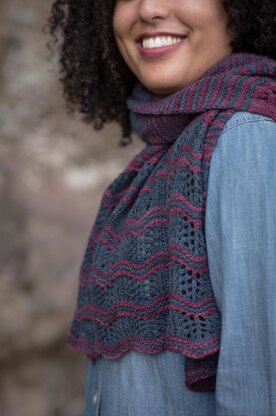The shawl is constructed by casting on a few stitches, then increasing stitches at one edge of the piece, creating an asymmetrical triangle.