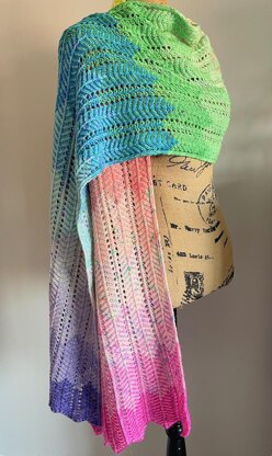 This stylish shawl is worked in brioche stitch, perfect for using up small amounts of yarn, whether leftovers from your last project or tiny skeins - try just a few colours or go wild with it! The pattern features a double yarnover eyelet rib and easy-to-work brioche stitch, making this an ideal project for the beginning brioche knitter. Even a seasoned brioche knitter will love this shawl for its versatility and colour possibilities. Details on how to change yarn colours and alternative yarn options are included in the pattern.