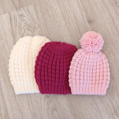 Easy beginner friendly crochet hat patter worked in flat, not in rounds. 6 sizes available from baby to adult. Pattern with 8 pages of explanations and step by step photos.