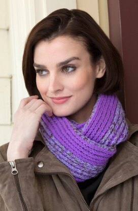 Brioche-Look Cowl in Red Heart Shimmer Solids - LW4321