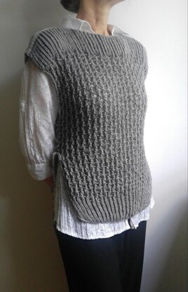 This women's sweater vest is made sideways, from the bottom up and you can customize it by making your own unique design: cropped or longer, fit or oversized, with lacing-up or sewing sides...The mesh pattern uses increaasing and decreasing stitches in 2 color brioche knitting technique and gives a very elastic fabric. You have a written pattern (in English), row by row, stitch by stitch, chart and photo & video tutorials for important stitches.