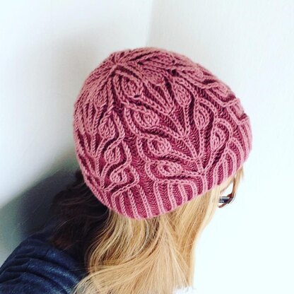Always it´s so exciting to make little unventions about brioche knitting. As soon as you start increasing or decreasing, stitches become alive and pattern lines are growing all over the hat! Another reason I love brioche stitches is the possibility of combining two colors. Obviously you can keep things simple with tonal neutrals and contrasting bright colors. But it becomes so subtle to go for a low contrast. A light rose and a slightly darker pink, a dark beige and a light brown, as if one color is the shadow of the other...