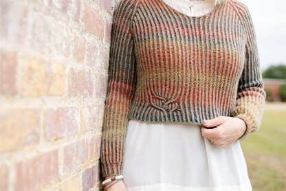 Reversible squishy brioche fabric, layered colors and little details: this raglan pullover has it all. Sweater is worked seamlessly from the top down with flattering waist shaping and asymmetrical side detail. Pair two yarns of slightly different weights for texture that truly pops. It is easy to modify the length of this sweater as you go but DID YOU HEAR? Crops are for everyone!