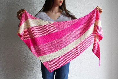 La Brioche est le point incontournable de 2016, et ce modèle simple est une première approche abordable. Aucune augmentation (ni diminution) n’est faite dans les parties en Brioche, ce qui en fait un modèle idéal pour se lancer dans un nouveau challenge. La forme en triangle asymétrique en fait un accessoire facile à porter, et laisse la part belle aux nombreuses associations de couleurs possibles.