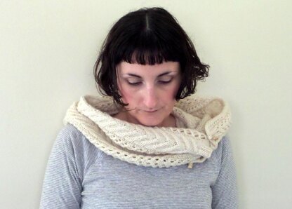 Brittany’s buttoned cowl is a warm and versatile piece of neck wear. The combination of cables and lace make this cowl both delicate and cozy, while the toggles allow for it to be worn in several different ways. The length is easily adjusted by working more or fewer repeats of the main pattern and the buttons keep even a short scarf securely around the neck. The instructions are fully written with a chart provided for the main stitch pattern.