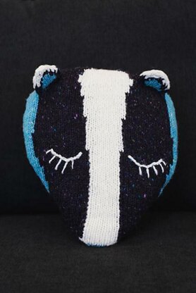 Introducing Onyx from this cute set of cushions every child and adult will love. Who will you knit first? Sapphire the Owl, Heather the Fox or Onyx the Badger? All will make a fun and whimsical addition to your room. Each Cushion is worked in intarsia from the bottom up. Front and back are worked separately before being sewn together and stuffed. Features are then added with embroidery as well as some knitted ears or ear tufts.