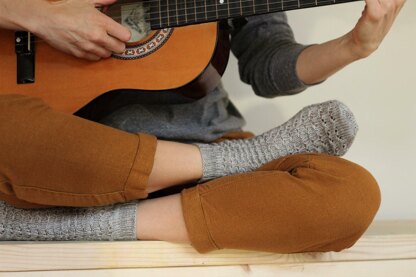 Socks are cast on at the cuffs and worked from the top down seamlessly in the round. The heel can be worked as a traditional heel flap or as a short row heel, then the foot of the sock is also worked in the round down to the toes which are grafted closed with Kitchener Stitch.