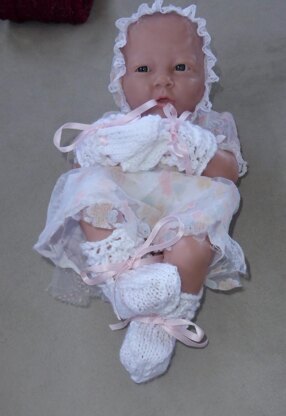 This style of bootie and mittens are also available in sizes 0 (3-6-9) months.