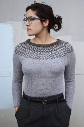 Brownstone Ironwork is worked from the bottom up in one piece. The sleeves are worked separately and joined to the body before working the yoke.