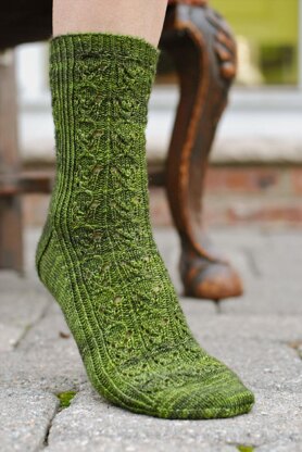 The sample shown was knit in Madelinetosh Tosh Sock.