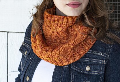 Cowl Approximately 260 yds/238 m of aran weight yarn. 2 skeins of Vrinda Yarn Yoga (100% Fine Uruguayan Merino, 150 yds/137 m in 100 gr); Fuego