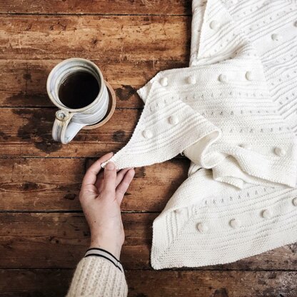 The shawl is knit out of Rosy Green Wool Cheeky Merino Joy, which is their delicious sport weight base. This 100% extra fine merino is pure butter for the fingers :). The sample requires 3 skeins for the main color, and one for the contrasting (you only need the tiniest amount for these slipped sts though).