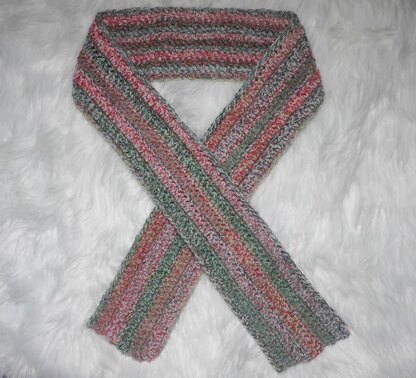 This simple crochet scarf pattern alternates rows of herringbone double crochet and single crochet to create a stitch pattern that slants like brushstrokes.