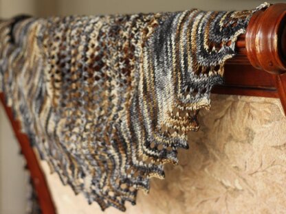 Short-rows and eyelet mesh make the most of variegated yarns in this lovely wide shawlette. Bryndis is worked sideways and uses short-rows to insert the triangles of eyelets.