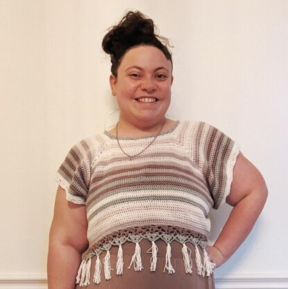 The Bubble Gum Boho Top is a top down design, therefore there is no need to seam and you can try it on while making it.
