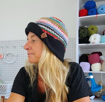 Turn it into a trendy Bucket Hat on a Sentro knitting machine! Using both the Sentro 48 and Sentro 22 circular knitting machines, you can create a stylish and eco-friendly hat while busting through your yarn stash.