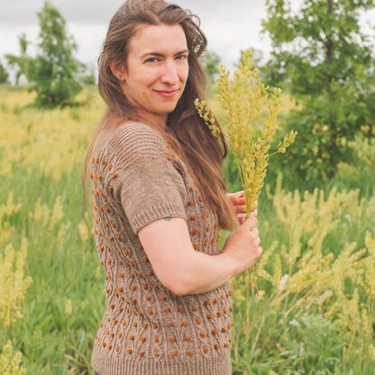 Budburst, with its branches and puffy buds, represents the magical moment when winter turns into spring. It’s worked from the top down, with drop shoulders and a boxy fit. The shoulders and neckline are made using short-rows. The stitch pattern combines twisted stitches and bobbles worked in a contrasting color, in stranded colorwork. The twisted stitches are made without a cable needle for a smooth knitting experience (tutorial included). The pattern includes 2 sleeve length options, nine sizes and detailed modifications ideas such as knitting the back in stockinette.