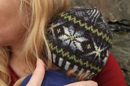 The Buddi Beanie is a traditional Shetland design for babies of 6-12 months. The design uses six colours of 2 ply jumper weight 100% Shetland wool but you can choose to use less colours.