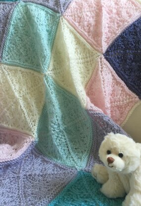 Delicate lace motifs combine in a simple but elegant baby blanket. Modular design and construction means that you can customise the finished piece to your required specifications. Originally designed for DK weight yarn, alternative yarn weights could be substituted if desired.