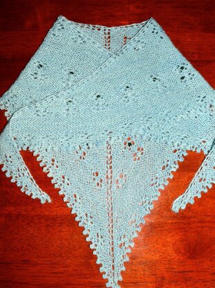 This heart-shaped scarf is a fun knit and goes relatively quickly. It's knit in garter stitch with lace buds and flowers and a picot lower edge, and is completely reversible.