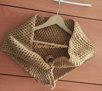 Bufanda de crochet en forma triangular para anudar al cuello o para llevar a los hombros como un chal, con un esponjoso punto puff que hace que la pieza sea más abrigosa y suave.