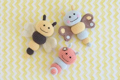 The colorful and smiley bug rattles will make any baby happy! They`re easy to make and bring a lot of joy. Pattern includes 3 bugs – sweet butterfly, friendly bee and nosy caterpillar. Bug rattles make a cute gift for the newborn.