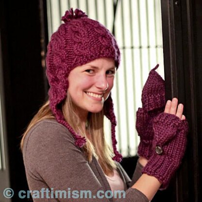 For more information and pictures, see http://www.craftimism.com/2013/11/bulky-cabled-hat-with-earflaps.html
