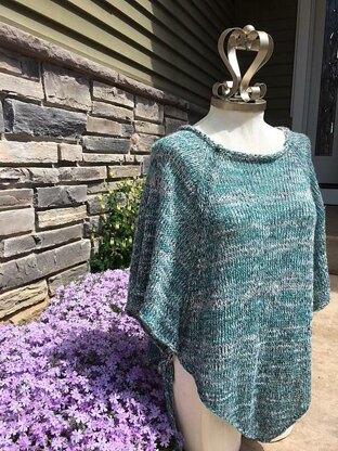 This cute poncho is made in 4 pieces then seamed together at the end. It has ties under the arms that tie together to make the poncho more of a tunic type top. It is a quick knit on a bulky knitting machine. There are 2 sizes, sm/med, and large.